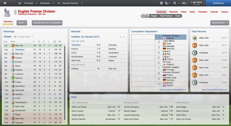 Manchester United and Manchester City still fight for the top of premier league, Tottenham in 2nd right now but if Manchester City win againts Aston Villa, City will be 2nd. Arsenal come in 4th place, unfortunately Chelsea and Liverpool detained in 7th and 8th.