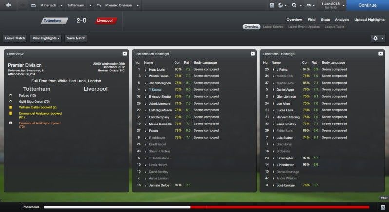 Half season with Tottenham Hotspur.... we start with good run, 5 win in a row and lost from Manchester United in game 6. and we made it go through to semifinals in Capital One Cup, we