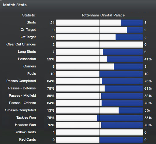 From the formation, i was afraid 3 of Crystal Palace upfront will destroy my defender but i believe Scott Parker as Ball Winning Midfield be able to help the defender, also Bale and Lennon should cover the defender too.