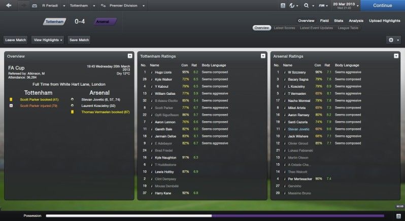 With full of confidence we ready to play the replay match, and i use attacking instead of defend tactic because i saw a great chance to win the game. But what i expected was not going well, Arsenal crush us at home.