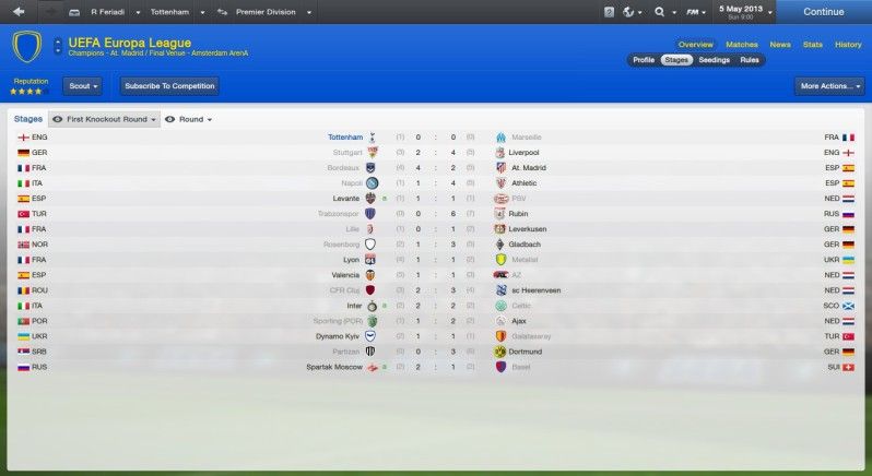 In the first knockout round, we meet Marseille. we win at home game with 1 - 0 and draw at away 0 - 0. once again we qualify to second knockout round.